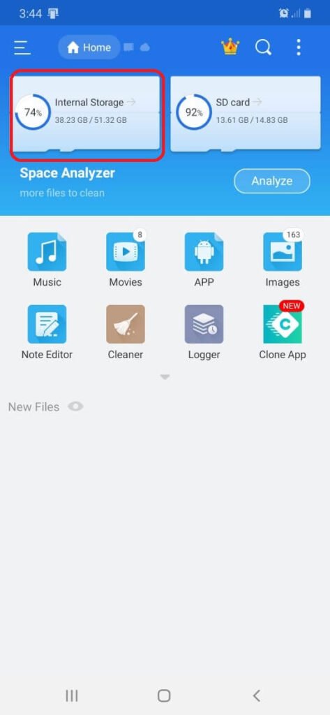 - بعد الانتهاء من عملية التثبيت سوف نحتاج برنامج تصفح ملفات الذاكرة الخاصة بالهاتف ويمكنك استخدام تطبيق ES File Explorer.